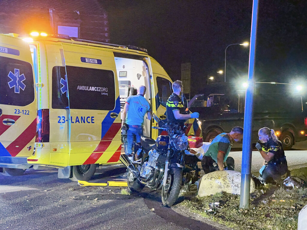 Swalmen – Een motorrijder is donderdagavond gewond geraakt nadat hij van de weg raakte en in een tuinhek reed. De motorrijder reed op de Reubenberg richting de Bosstraat toen hij in de flauwe bocht met de Wittekoeweg rechtdoor op een tuinhek gleed. Een meterslang slipspoor is op het wegdek te zien waaruit op te maken val dat hij nog geprobeerd heeft af te remmen, ondanks dat was de klap nog dusdanig hard dat hij bij zijn val zijn onderbeen brak. Hij is per ambulance naar het ziekenhuis gebracht. Een berger heeft de beschadigde motor mee genomen.
