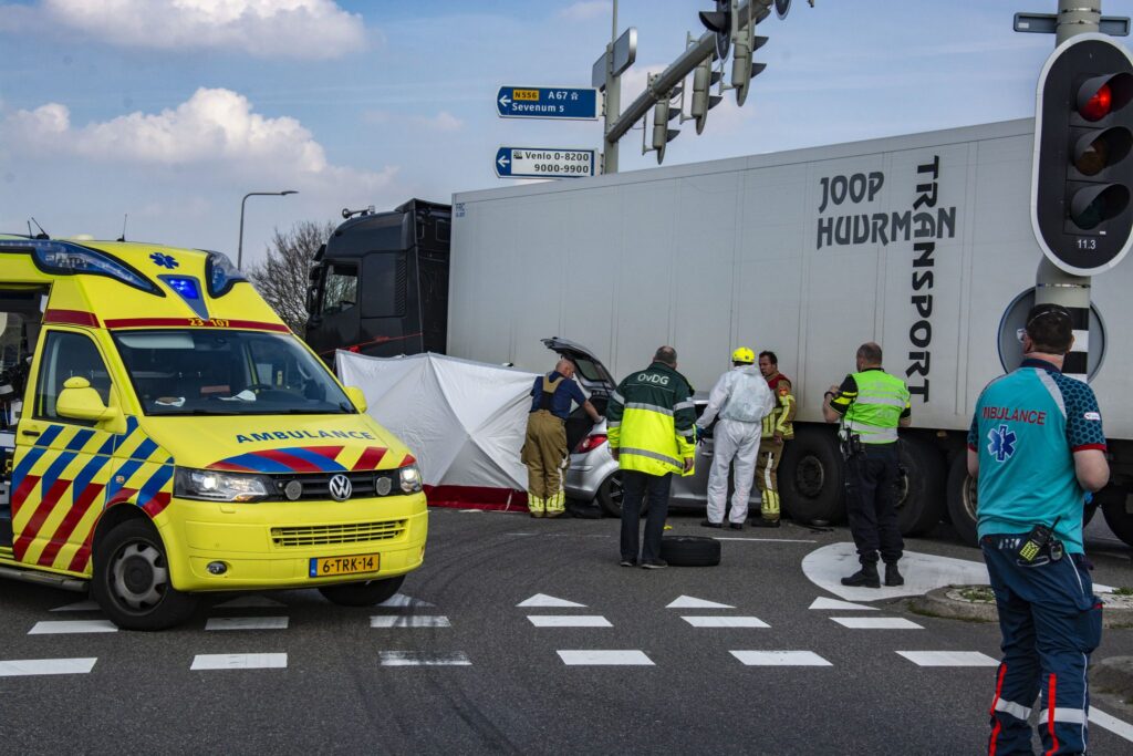 Venlo – Op de kruising tussen de Geliskensdijkweg en de Eindhovenseweg bij het industrieterrein in Venlo is dinsdagmiddag een dode gevallen bij een ernstig ongeluk. Dat heeft de politie laten weten via twitter. Rond half twaalf botste een auto tegen de zijkant van een vrachtwagen met oplegger. De auto kwam daarbij klem te zitten onder de trailer.