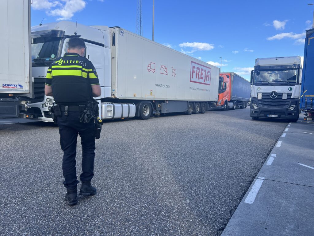 Op de parkeerplaats staan vanwege het weekend veel vrachtwagens met verschillende nationaliteiten. De politie gebruikte telefonische tolken om een zo goed beeld te krijgen.