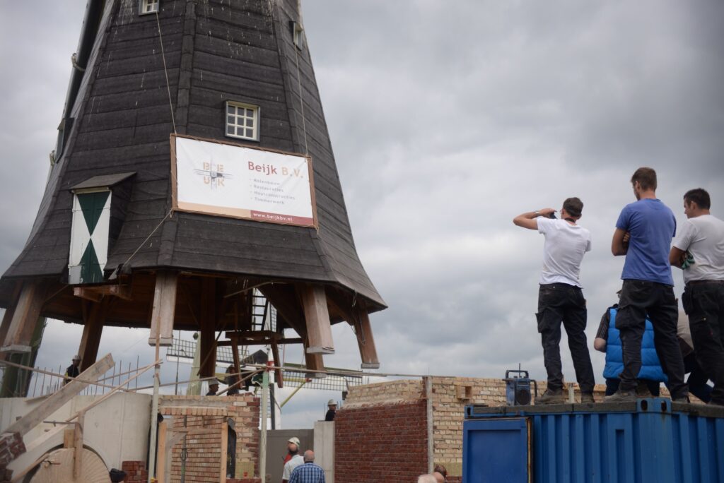 Eén hijskraan tilt de 18.000 kilo zware kap op, de andere de 40.000 kilo wegende romp. Die wordt op een nieuwe betonnen fundering geplaatst. De verhuizing kost 300.000 euro. De molen is nog steeds in gebruik voor het malen van gerst, tarwe, rogge en mais.