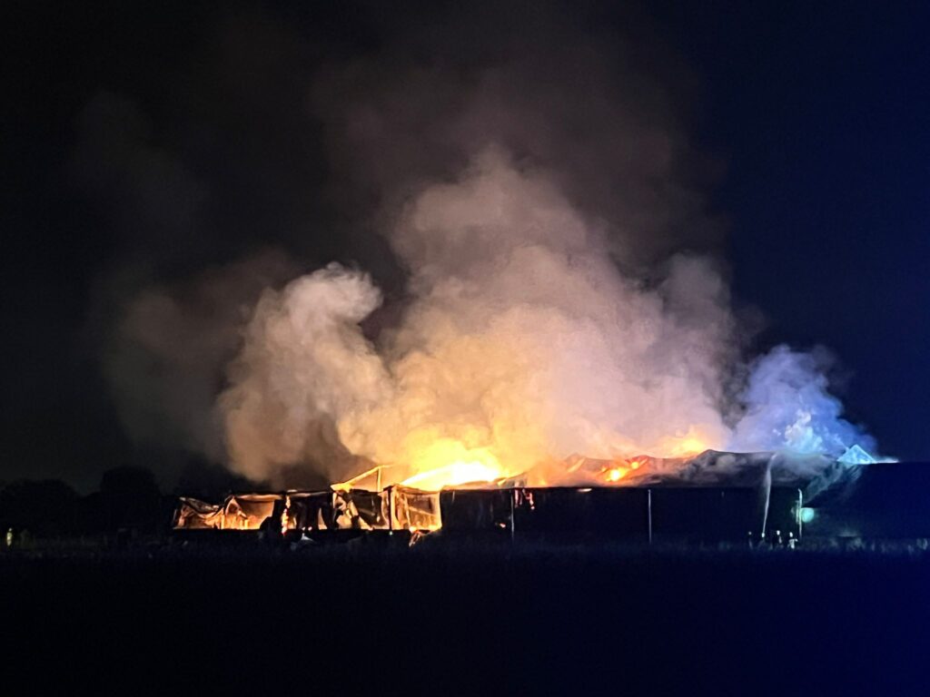 Vanwege de aanwezigheid van hooi en kans op overslag op drie stallen met koeien sloeg de brandweer groot alarm. Meerdere blusvoertuigen, watertanks uit de hele regio en een groot watertransport werden gealarmeerd.