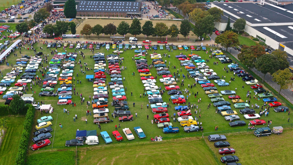 Afgelopen zondag was het op de 9e editie van het Internationale USA Car Treffen in Reuver drukker dan voorgaande jaren. In totaal waren er z’n 600 auto’s gekomen uit de verre omgeving. Het bezoekersaantal is vergelijkbaar gebleven met vorig jaar. Organisator Gerrit Hillen is enorm tevreden met de opkomst, het weer en medewerking van alle vrijwilligers. Volgend jaar organiseert hij de 10e editie, dat zal speciaal gevierd worden zij hij tijdens een korte toespraak. Aerokopter maakte in opdracht van Ruiver.nl de volgende lucht foto’s van het treffen in Reuver, gemaakt rond 11 uur.